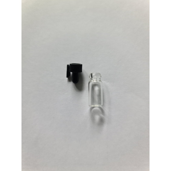 Миниатюрная стеклянная пробирка, объёмом 0,5мл, с простой герметичной пробкой-затычкой.